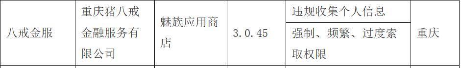 通报显示,八戒金服所涉问题为违规收集个人信息及强制、频繁、过度索取权限日斗优配,应用来源为魅族应用商店,应用版本为3.0.45。